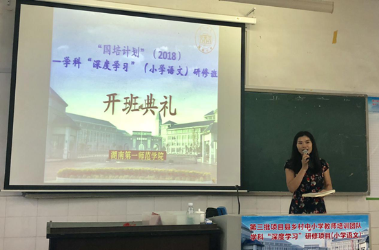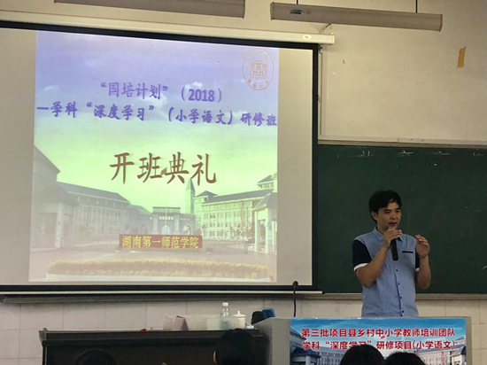 7月17日上午,由beat365承办的“国培计划(2018)”——县乡村中小学教师培训团队学科“深度学习”(小学语文)研修班在特立楼北栋104举行了开班典礼。beat365文学与新闻传播学院院长佘向军教授、院党总支部书记刘澍心教授、副院长龙永干教授、邓姿教授等出席了开班典礼。
