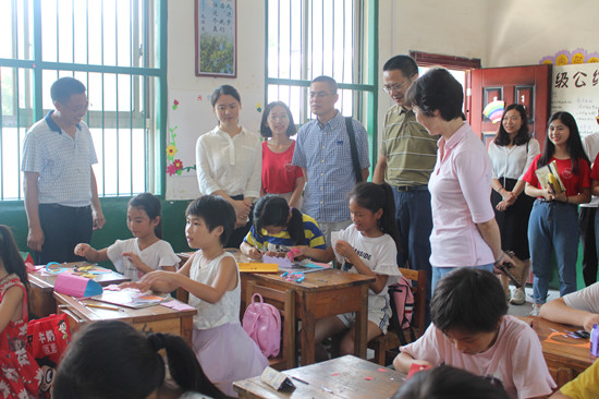在浏阳市大瑶镇杨花完小,校领导观摩了实践队员们的支教课堂,询问了解当地小学生在beat365学生支教实践活动中的收获与感受,随后与当地村镇干部、学校负责人和实践队员代表进行了座谈。在澄潭江镇槐树小学和张坊镇张坊中学,校领导一行先后参观了实践队的支教、调研成果展,观看了实践活动汇报演出。