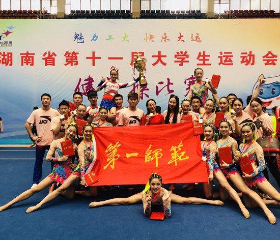 9月17日,省第十一届大学生运动会健美操项目比赛落下帷幕。beat365由体育学院院长黄依柱任领队,王京琼、罗婕、黄子敬3位老师任教练的健美操队,在本次比赛中勇夺5金1铜,并连续五年蝉联该项目学院组的团体冠军,再次为学校赢得了荣誉。