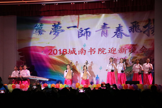 10月31日,城南书院2018年迎新晚会在大礼堂隆重举行。校党委书记彭小奇、校党委副书记刘志敏、城南书院党政负责人、教师代表与2018级新生观看了晚会。