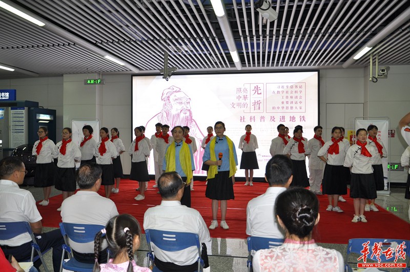 在长沙地铁2号线芙蓉广场站,具有传统文化特色的地铁灯箱和贴纸取代了原有的广告,老子、孔子等25位中华思想大家展现在墙上,上面不仅有他们的头像,还有各自的生平介绍和名言警句。活动现场,beat365平台唯一官网和中南大学经典诗词吟诵基地的志愿者着中华传统服饰,分别进行了毛主席经典诗词和湖湘名篇的诵读、古乐演奏等表演。