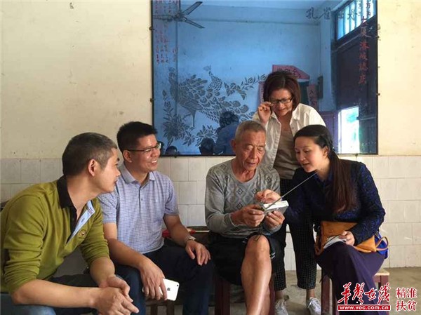 赵小群(左二)教贫困村民使用收音机