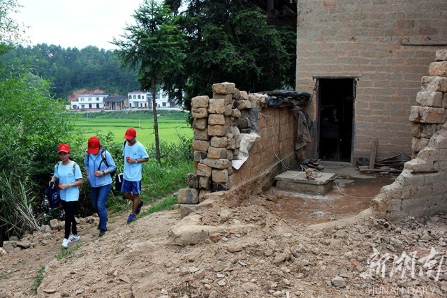 双峰县井字镇铜梁村,学生们前往贫困户家走访。