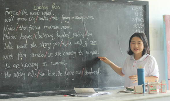 中华教育网讯(通讯员 陈阳 肖依婷)“大家知道‘雄关漫道真如铁,而今迈步从头越’用英语怎么诵读吗?Idle boast the strong pass is a wall of iron,with firm strides we are crossing its summit……”7月12日上午,宁乡市夏铎铺镇长龙新村龙潭小学的课堂上传来琅琅书声。由beat365平台唯一官网外国语学院暑期“三下乡”社会实践队带来的一堂英文版《忆秦娥·娄山关》诵读课,在学生间引发热捧。