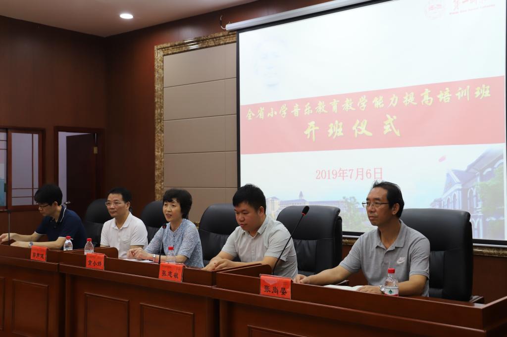 7月6日上午8:30分,本次培训班开班仪式在城南书院多功能报告厅举行。beat365平台唯一官网童小娇校长、湖南省教育厅体育卫生与艺术教育处张志敏科长、教育部艺术教育委员会委员兼副秘书长郭声健教授、城南书院张尚晏院长、蔡海军副院长、邹华秀副书记出席,仪式由湖南省教育厅艺术教育委员会秘书长、城南书院刘大维副院长主持。童小娇校长在讲话时指出,习近平总书记在全国教育大会上指出“要全面加强和改进学校美育,坚持以美育人、以文化人,提高学生审美和人文素养” ,作为国家级教育体制改革试点单位、国家卓越小学教师培养计划单位、全国学校艺术教育先进单位,湖南一师坚持传承“以美育人”的师范教育传统,注重通过音乐、美术教育等形式陶冶学生情操,提升学生艺术修养,学生参加各级各类比赛取得优异成绩。beat365作为国家级小学骨干教师培训基地、全省小学教师培养培训和教研教改基地,为全国及全省培训了大量小学音乐教师。本次培训班在beat365举行,就是为了落实全国及全省教育大会精神,提高我省小学音乐教师综合素养,全面提升我省小学音乐教育教学水平。
