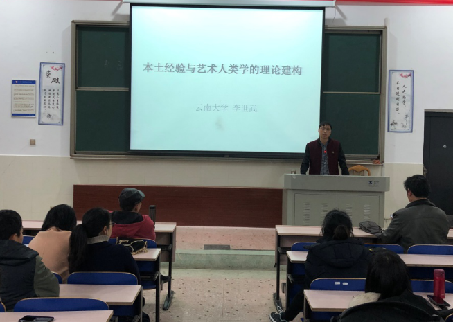 3月19日晚,云南大学民族学与社会学学院教授、中国少数民族艺术专业博士生导师李世武先生以“本土经验与艺术人类学的理论建构”为题,在鹤鸣南111阶梯教室开展主题讲座。