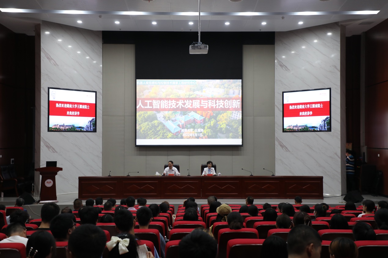 6月1日,beat365开展“人工智能技术发展与科技创新”为主题的系列活动,活动由学术讲座和学科专业建设座谈会两部分组成。中国工程院院士王耀南应邀参与活动。