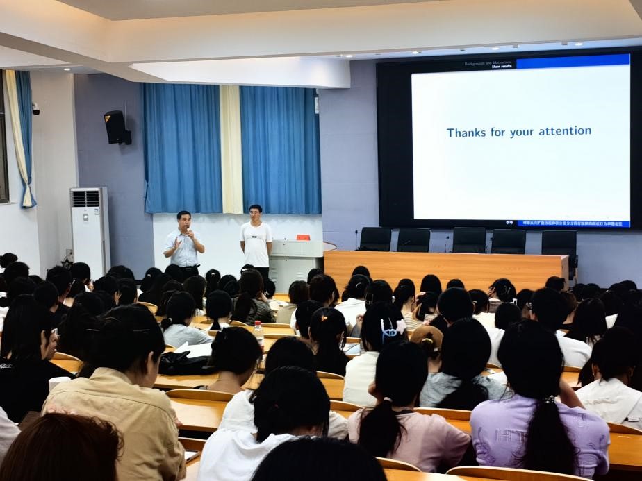 最后,陈爱永作总结讲话,他认为李坤教授的报告精彩纷呈且富有教育意义,不仅给同学们带来了新颖的数学知识研究,还能够激发同学们对于数学的热爱与追求。陈爱永以中南大学刘路攻克世界级难题西塔潘猜想和俄罗斯“隐士”数学家佩雷尔曼证明庞加莱猜想为事例,鼓励同学们积极主动参加相关学术讲座,既可以进一步开阔学术视野、接受学术熏陶,又能找到并培养对数学纯粹的热爱和兴趣,对今后人生道路的规划也会更加清晰。在场的同学们纷纷表示,通过这次讲座,他们对《数学分析》和《常微分方程》等课程有了更加深刻的理解与感悟,更加热爱数学!