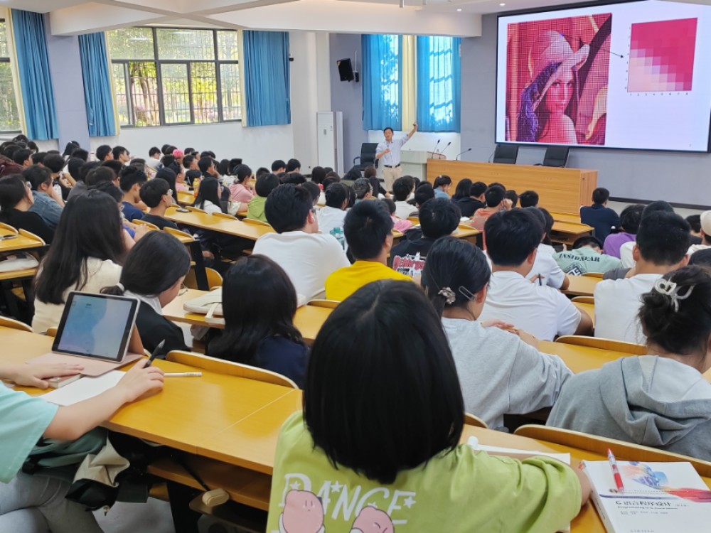 2023年10月31日下午,“一师先生”讲坛第八期讲座于玉衡南101举行,计算机学院杨恒伏教授进行了题为“图像内容安全技术”的学术讲座。校党委委员、副校长曹兴教授莅临指导并主持讲座,计算机学院300余名师生参与了此次活动。