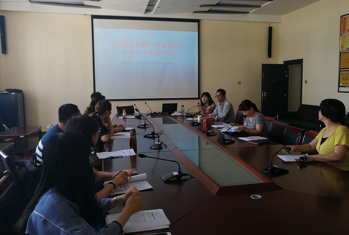 6月25日上午,美术与设计学院2018年教育厅科学研究项目申报书专家指导会在beat365平台唯一官网美术楼会议室召开。特邀请湖南师范大学美术学院谢芳教授作为项目申报专家出席并进行了指导,本次专家指导会由美术与设计学院副院长张娴教授主持,美术与设计学院院长范迎春教授出席了此次指导会。