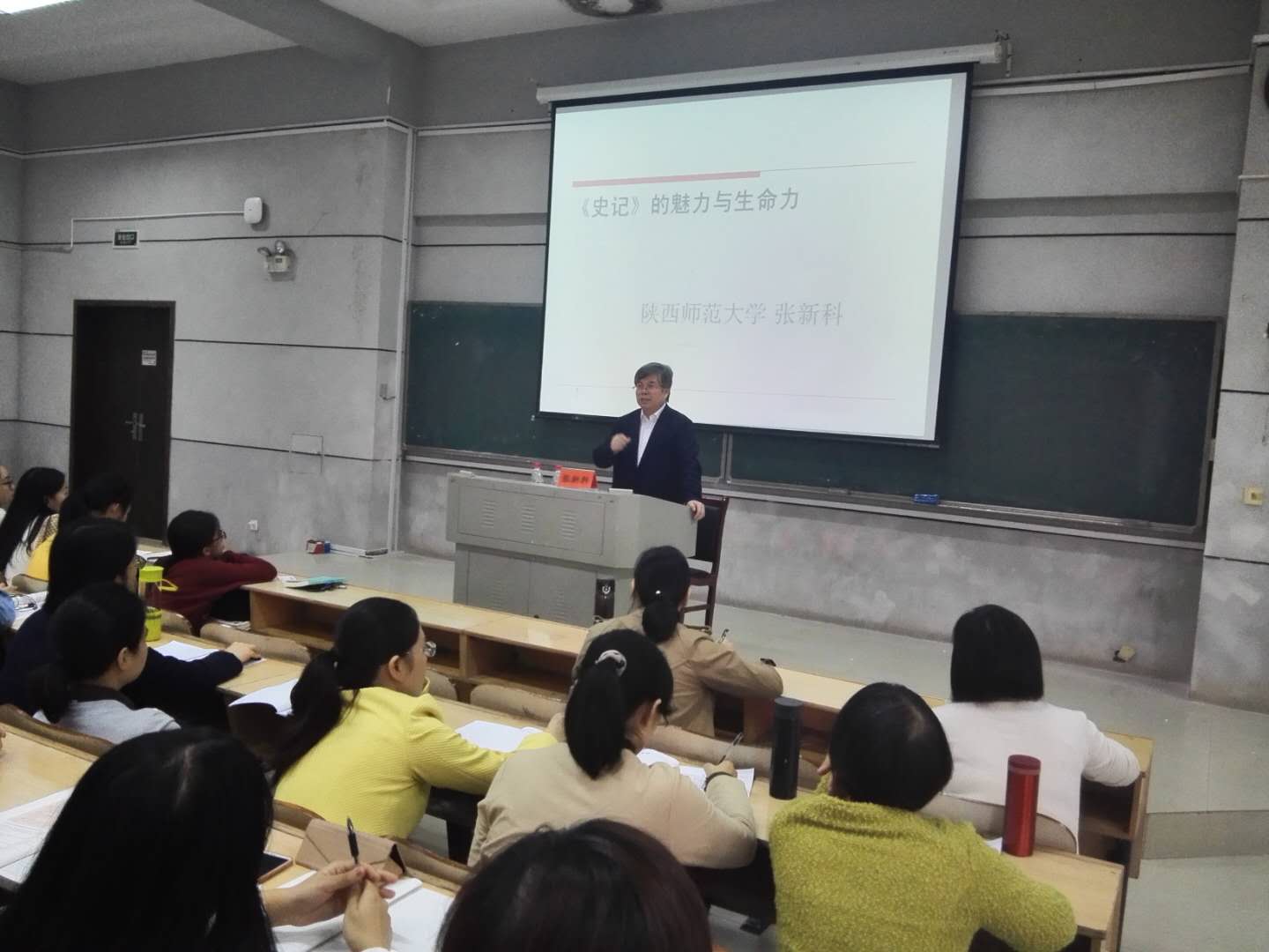 10月19日下午3点,国务院中文学科评议组成员、教育部“长江学者”特聘教授、陕西师范大学文学院院长张新科教授,应学校邀请在润寰楼南栋201教室为学校师生做了题为—《史记》的魅力与生命力的学术讲座。讲座由文学与新闻传播学院龙永干副院长主持,学校各学院师生近300人参加了本次活动。
