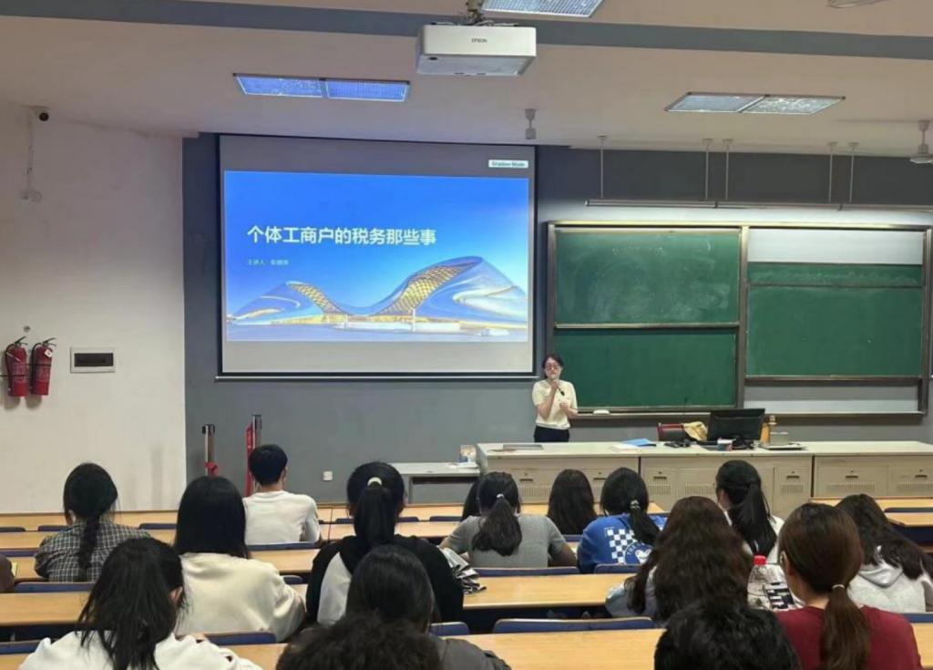 3月25日,米乐mile官方网站为提升学生对个体工商户税务知识的认知,特邀浙江海港义乌枢纽港有限公司的财务经理及资深会计师彭剑萍,于长廊阶梯教室一举办“雪峰论道”系列讲座——个体工商户的税务那些事,旨在为学生们提供全面且深入的税务知识,助力学生更好地掌握个体工商户在税务方面的相关政策与规定,为其未来的创业之路奠定坚实基础。