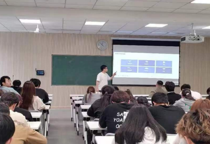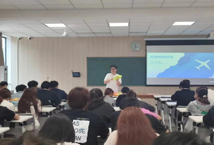 在交流环节,刘承翰精心准备了公司研发的部分产品,将其作为与在座学子的互动交流的赠品。他一边向同学们展示产品,一边以此为契机,详尽阐释了电商行业在选品环节的重要性,以及数据分析和市场调研的不可或缺性。同时,他也着重提醒同学们,应当时刻保持高度的警觉性,全面认识并积极应对跨境电商所面临的各种风险与挑战。