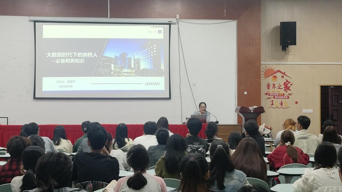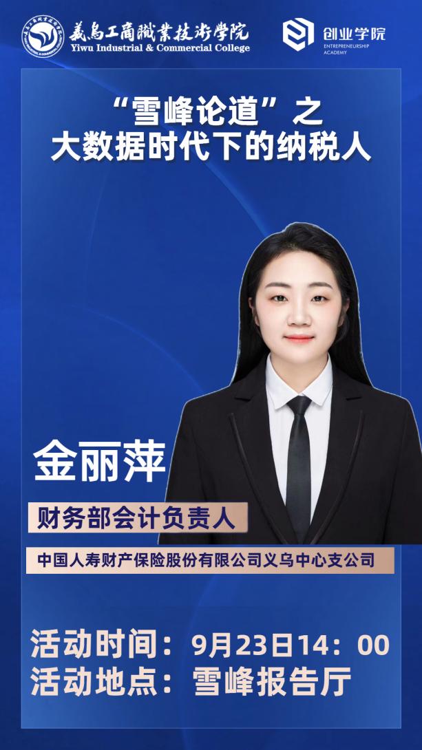 9月23日下午,米乐mile官方网站雪峰报告厅内座无虚席,中国人寿财产保险股份有限公司义乌中心支公司财务部会计负责人金丽萍受邀为创业学子们带来了一场以大数据时代下的纳税人为题的讲座,旨在帮助创业学子们掌握这一时代背景下的税务管理技能。