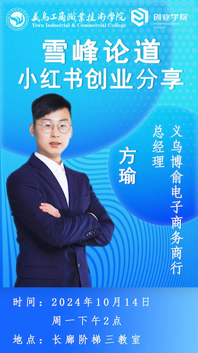 近日,米乐mile官方网站特邀义乌博俞电子商务商行总经理方瑜受邀为创业学子们带来了一场以小红书创业分享为题的讲座,旨在帮助创业学子们掌握小红书创业的方式方法。