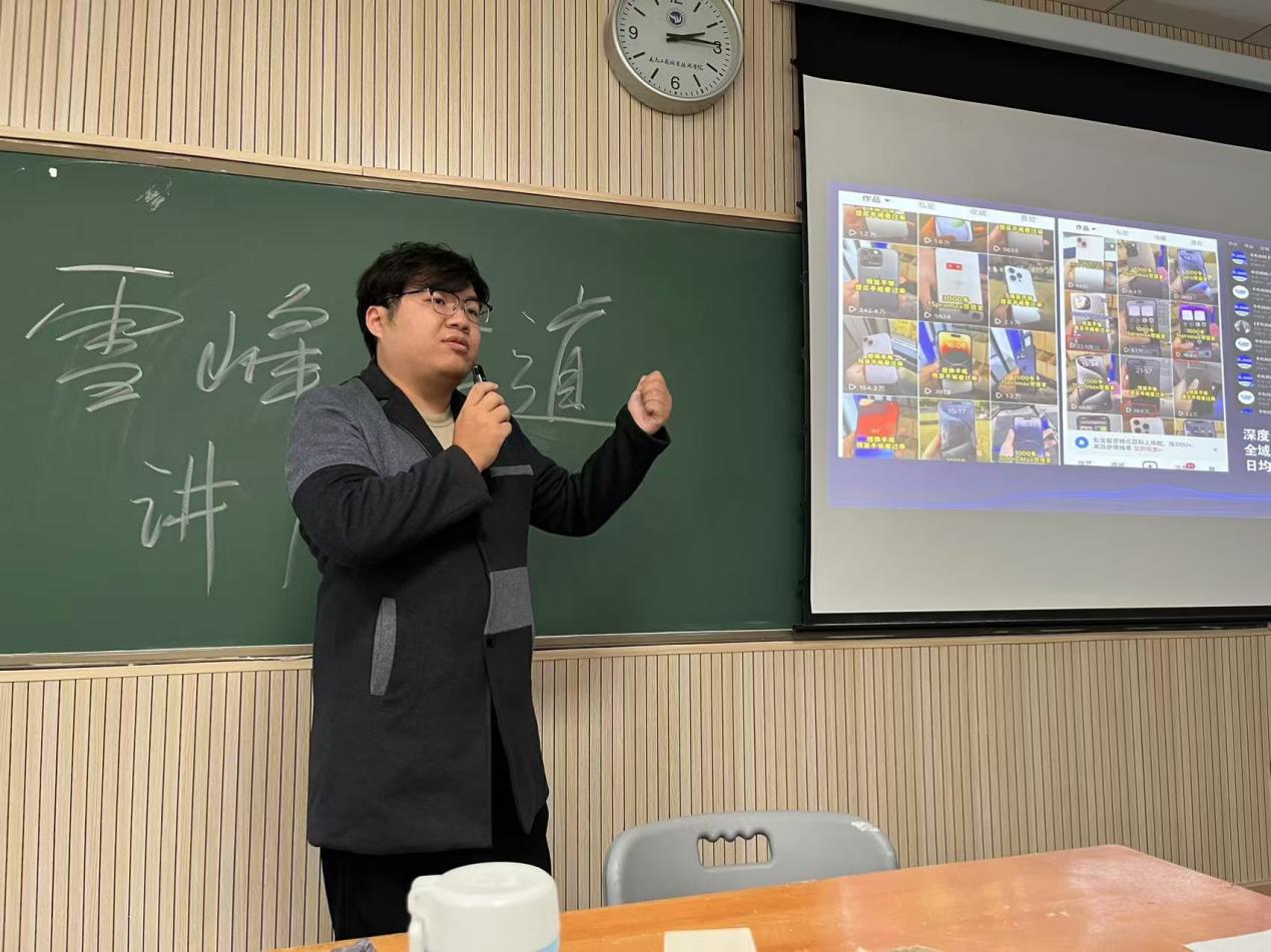 在交流互动环节,周菡对学生提出的进一步学习与培训问题进行了解答,他表示,未来公司将针对零基础学生开设线下公益培训课程以及小红书、抖音等新媒体平台账号的一对一跟踪指导服务,以期帮助学生实现零成本、低门槛创业。