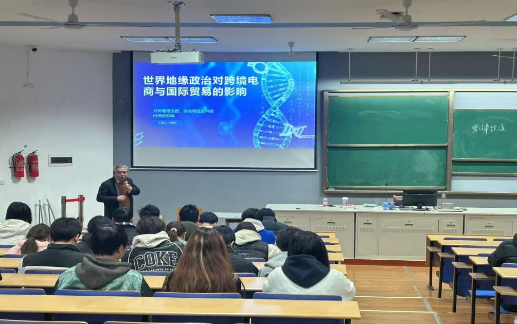 讲座最后,严园平着重探讨了区域冲突对国际贸易的冲击与挑战。他以“俄乌”战争、“巴以”冲突为镜,剖析了地缘政治动荡如何迫使企业和国家寻求新的贸易模式与合作路径,灵活调整策略,加强国际合作与创新,共同推动跨境电商与国际贸易的持续发展。