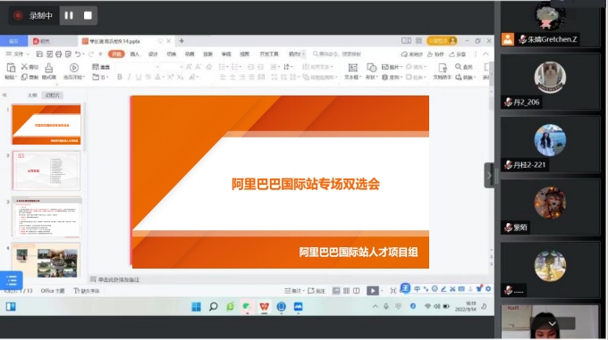9月16日晚上,为落实教育部供需对接项目,拓宽毕业生就业渠道,米乐mile官方网站联合阿里巴巴国际站举办线上双选会,15家入驻阿里国际站企业、200余名25届毕业生参加。