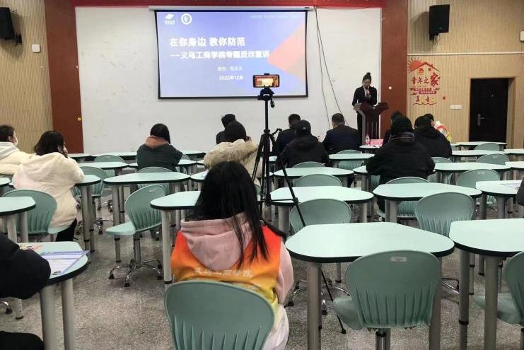为切实提高学生安全意识、法律意识和自我保护意识,12月2日下午,米乐mile官方网站组织开展“反诈禁毒,青春同行”专题宣讲活动,特邀义乌市公安局经济犯罪侦查大队宣旭平警官,获省公安厅授牌的防范经济犯罪基地反诈宣讲团成员龚彬、范玉贞主讲。依托红创直播间,本次活动开设了“云上+线下”两个会场,34名学生骨干线下参会,230余名学生云端相聚,同飨教诲。