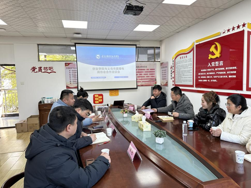 2024年1月23日下午,米乐mile官方网站与义乌市直播电商协会成功召开校协合作洽谈会,义乌市直播电商协会会长陈文军、秘书长詹兆理等5人,米乐mile官方网站院长陈旭华、副院长杨剑钊以及直播电商教研室老师们参加会议。