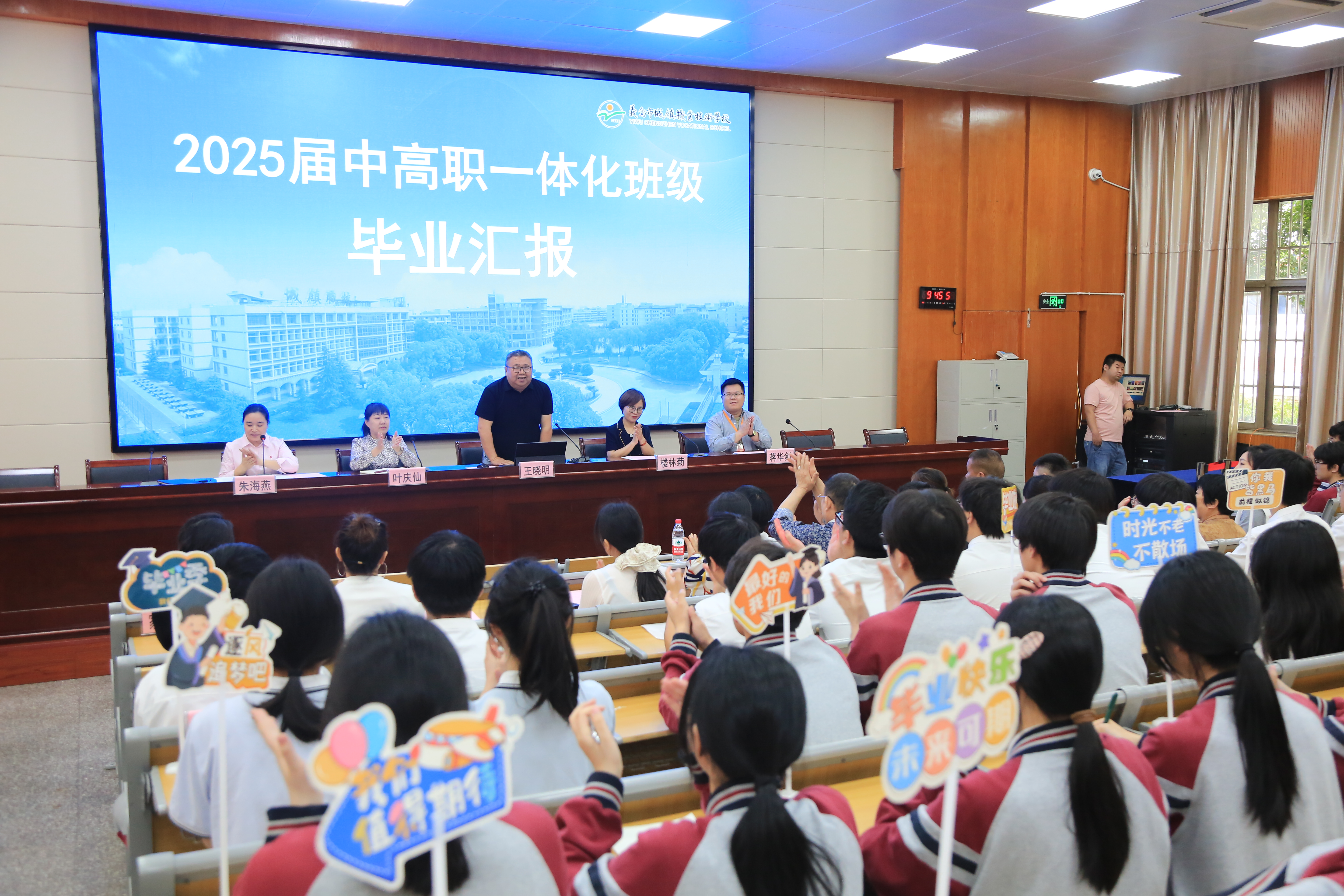 4月30日,义乌城镇职业技术学校为2025届中高职一体化毕业班组织了毕业汇报展示。经过三年专业学习,同学们硕果累累,他们以毕业总结的形式展现了属于自己的独特风采。现场听取毕业汇报的评委有校长楼林菊、副校长叶庆仙、教务处主任蒋华剑、副主任朱海燕、各毕业班班主任、优秀毕业生代表及部分家长代表。作为中高职一体化人才培养的合作院校代表,米乐mile官方网站米乐mile官方网站负责人受邀参加,并在现场进行了精彩点评。