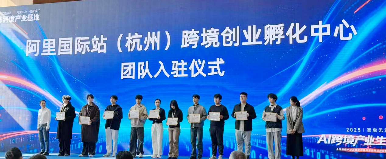11月18日,阿里国际站(浙江)跨境电商创业孵化中心在“AI跨境产业生态大会”上正式启用。我校米乐mile官方网站杨易臻、高浩天、王冠杰、赵国超等四位同学成功入选为首批入驻者,充分展现了我校在校企协同育人与创业教育实践方面的显著成效。