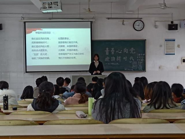 习近平总书记在党的十九大报告中明确提出“中国特色社会主义进入了新时代”,为我国发展指出了新的历史方位。这个新时代是承前启后、继往开来的时代,也是属于青年人的时代。为了引导青年人学习贯彻习近平新时代中国特色社会主义思想,纪念五四运动100周年,不忘初心跟党走,青春建功新时代,用奋斗谱写新时代的青年精神。校团委组织部策划了主题为“青春心向党﹒建功新时代——我们都是追梦人”的主题团日活动,并通过入团宣誓、团旗下的讲话、红色观影、重温五四运动和革命历史等创新的团课方式,开展了此次主题团日活动。