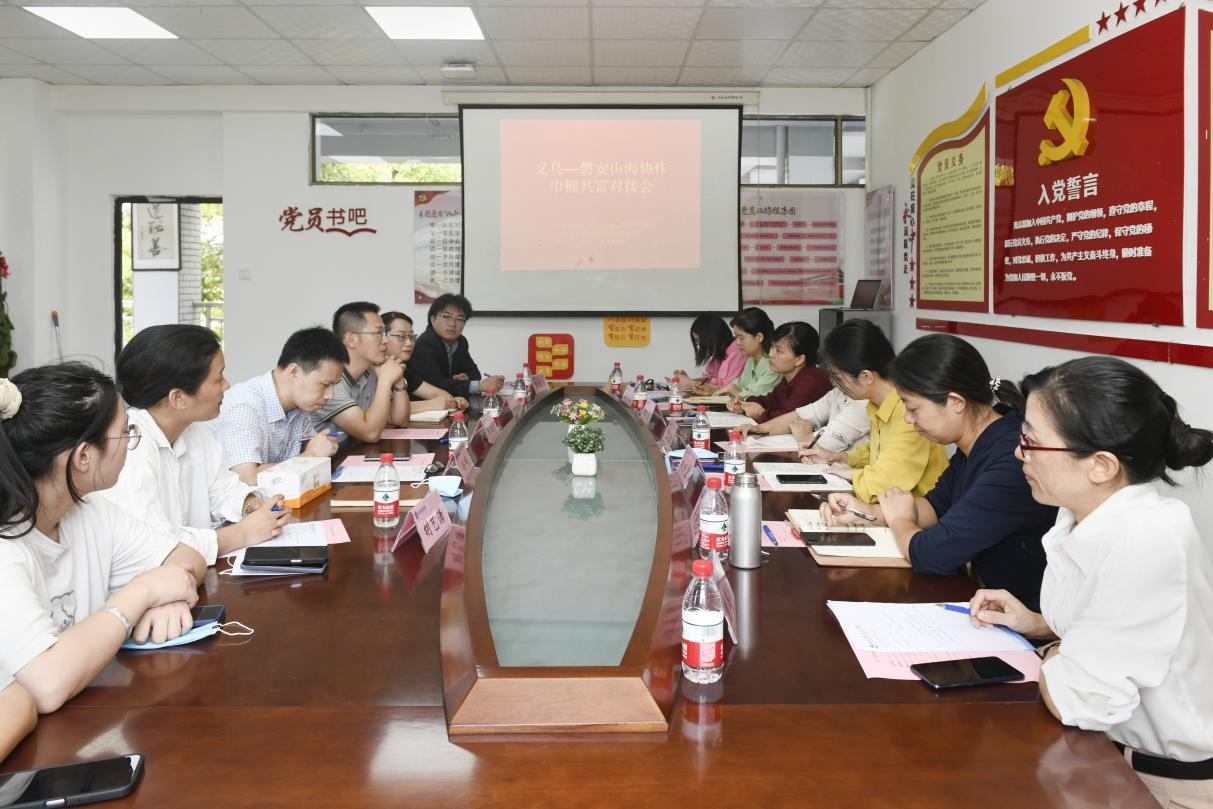 9月7日,义乌——磐安山海协作巾帼共富对接会在学校创业园举行,金华市妇女联合会三级调研员刘艾春,义乌市妇联党组书记、主席朱刚露,磐安县妇联党组书记、主席施迎霞,磐安县双溪乡党委书记羊晓光,磐安县妇联党组成员、副主席曹美珍,义乌市妇联副主席余依萍,义乌市妇联党组成员、副主席周丹瑛,学校米乐mile官方网站班子成员及学生代表参加。