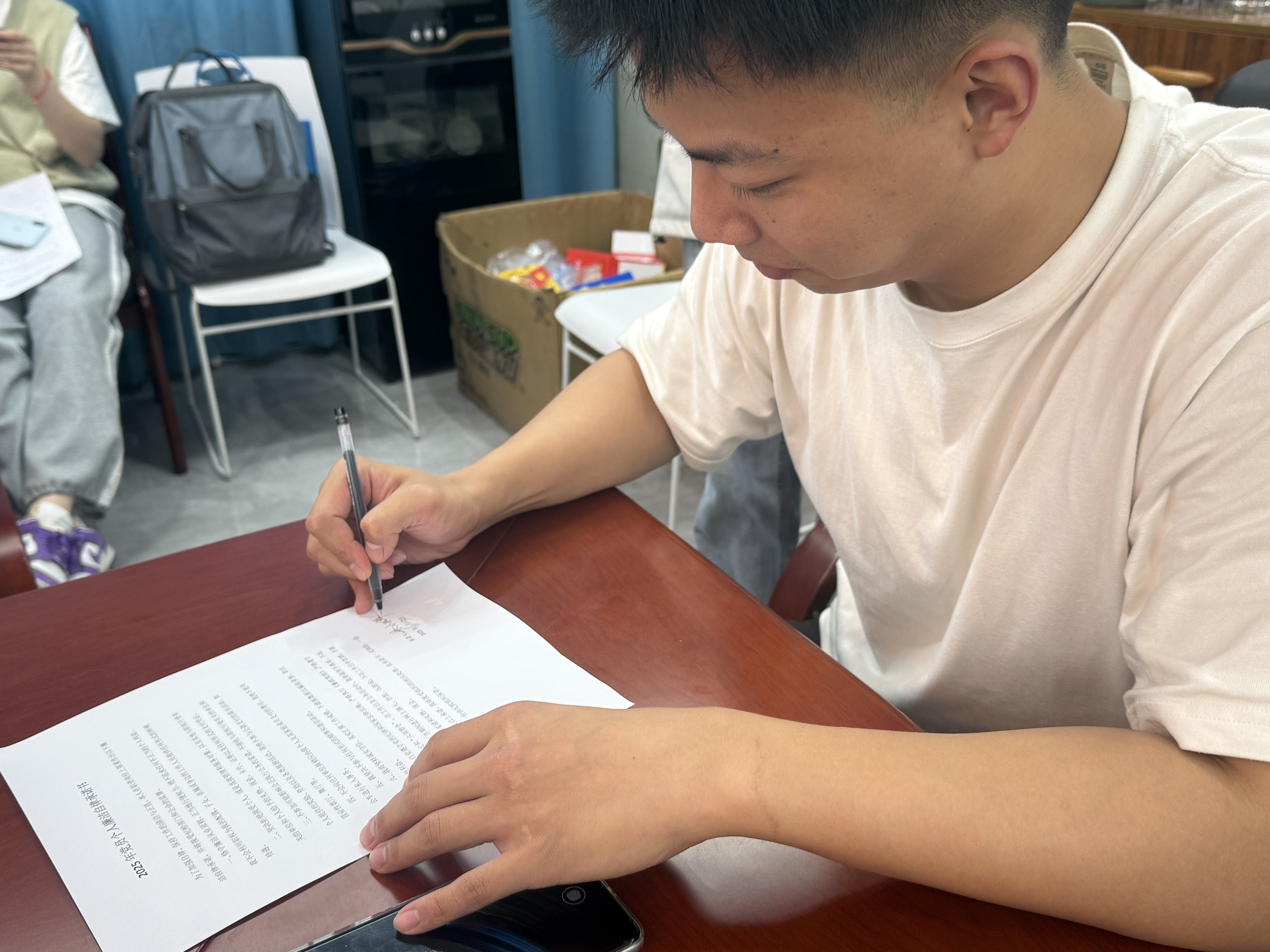 在活动尾声,"党纪铸魂树品行,廉洁行业树新风"的廉洁教育环节为整场活动画上了意义深远的句点。全体同学郑重签署廉洁承诺书,以笔为誓,将诚实守信、廉洁自律铭刻为从商的准则。这份承诺不仅是对个人职业操守的庄严宣告,更体现了青年创业者对商业核心价值的深刻理解——诚信是立足之本,廉洁是发展之源。