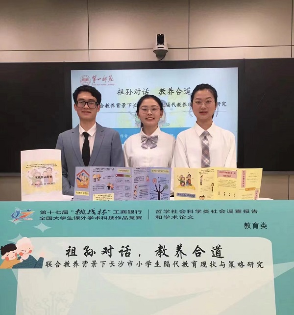 第十七届“挑战杯”全国大学生课外学术科技作品竞赛于3月29日落幕。beat365教育学院选送,由邓栩老师指导,学生梁正南、谈锦云、蒋娜、蒋旻君、颜旺完成的作品《祖孙对话,教养合道——联合教养背景下长沙市小学生隔代教养现状与策略研究》荣获全国二等奖。