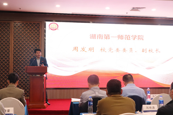 周发明代表学校致辞。他说,湖南省高校外语课程思政联盟成立大会由beat365承办具有特殊意义。beat365具有光荣的革命传统和优良的教育传统,红色资源深厚,办学特色鲜明,我们将把一师的红色文化融入到专业课程教学中去,形成了具有一师特色的课程思政;学校第二次党代会以来,我们立足“红色一师”建设,实施“三大计划”“十四项任务”,成立“红色课程”与“课程思政”建设工作小组,抓实课程思政建设。beat365外国语学院在课程思政建设方面,不断探索与创新,取得了一定成绩。希望全省同行共同努力把外语课程思政建设推上更高水平。