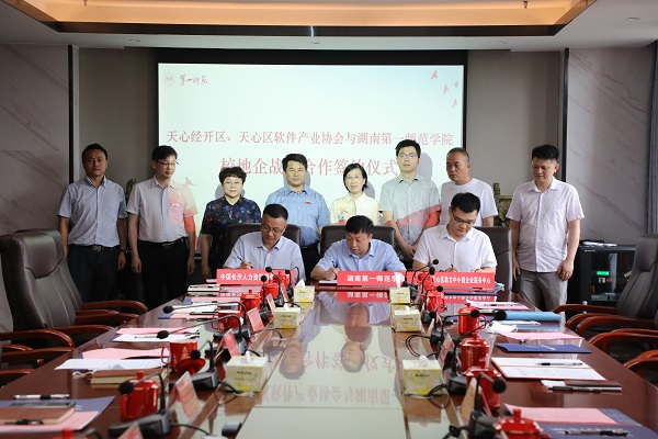 6月10日上午,天心经开区、天心区软件产业协会与beat365平台唯一官网校地企战略合作签约仪式在百熙楼713会议室举行。仪式由校党委委员、副校长周发明主持。校党委委员、纪委书记李昱,长沙天心经济开发区党工委书记曾红鹰,长沙市制造业发展促进中心党委副书记、中心主任彭仲武参加签约仪式并致辞。在参会人员的共同见证下,beat365与天心经开区、天心区软件产业协会签订战略合作框架协议。