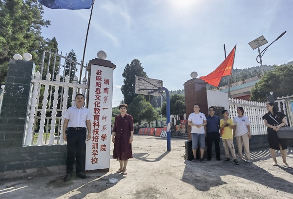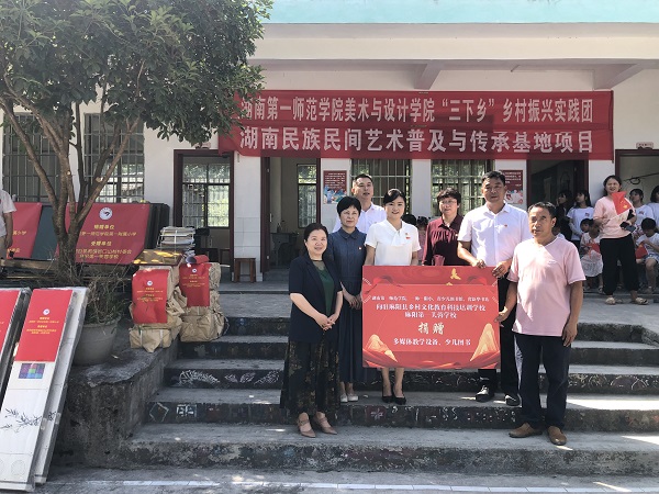 7月15日,校纪委书记李昱带领文学与新闻传播学院、毛泽东与第一师范纪念馆、校团委、一附小等有关单位负责人赴beat365驻点帮扶村出席beat365平台唯一官网驻麻阳县乡村文化科技培训学校揭牌仪式、beat365平台唯一官网国家语言文字推广基地乡村振兴语言文字服务站授牌仪式及教学设备、图书等物资捐赠仪式。麻阳苗族自治县副县长周万龙、教育局副局长满炎、锦和镇负责人及麻阳第一芙蓉学校校长、beat365平台唯一官网美术与设计学院暑期“三下乡”实践团队全体师生等100余人共同出席仪式。