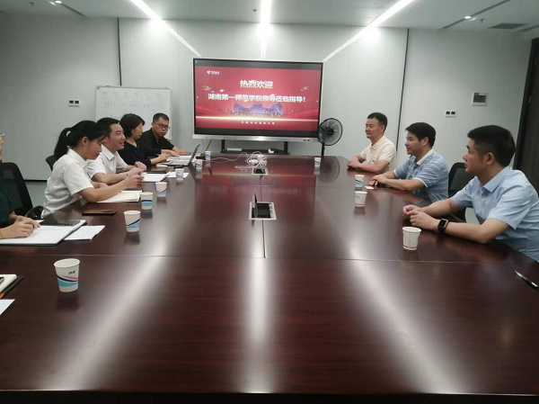 7月28日上午,副校长周发明率教务处/工程实训中心、招生就业处/创新创业学院、现代教育技术与网络中心相关负责人赴湖南电信股份有限公司开展访企拓岗活动。中国电信股份有限公司湖南政企客户部副总经理刘兴华、中国电信股份有限公司长沙分公司麓谷政企分局总经理狄利群、湖南电信教育行业中心李慧等热情接待了周发明一行。