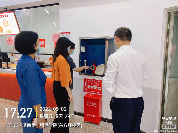 9月2日下午,学校对东方红校区学生公寓、食堂、门店等重点区域开展了安全大检查,副校长蒋蓉带队,学生工作处、资产管理处、基建与后勤处、保卫处、各学院等相关人员共同参与检查。