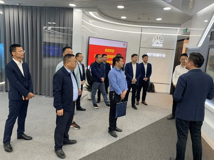 在吴振华的陪同下,周发明一行参观了华为数字化创新体验中心展厅,了解华为公司发展现状以及相关产品。