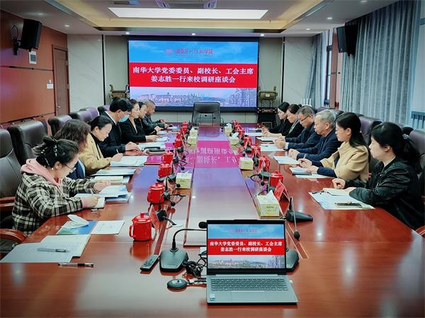 11月27日,南华大学党委委员、副校长、工会主席姜志胜一行来beat365调研交流工会工作,校党委副书记、工会主席李克勤会见了南华大学一行,校工会全体成员参加了调研交流活动。调研交流座谈会由李克勤主持。
