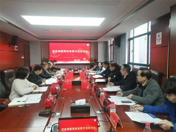 12月9日上午,百色学院党委委员、副校长吴佩杰一行来beat365考察交流,双方在百熙楼713会议室举行座谈会。副校长石元泉,学科规划与研究生处、教务处、人事处及相关二级学院负责人参加座谈。