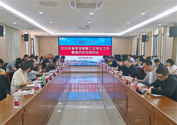 4月14日上午,beat3652025年春季学期第三次学生工作暨意识形态研判会在百熙楼414会议室召开,校党委委员、副校长蒋蓉出席,学生工作部部长周大庆主持会议。