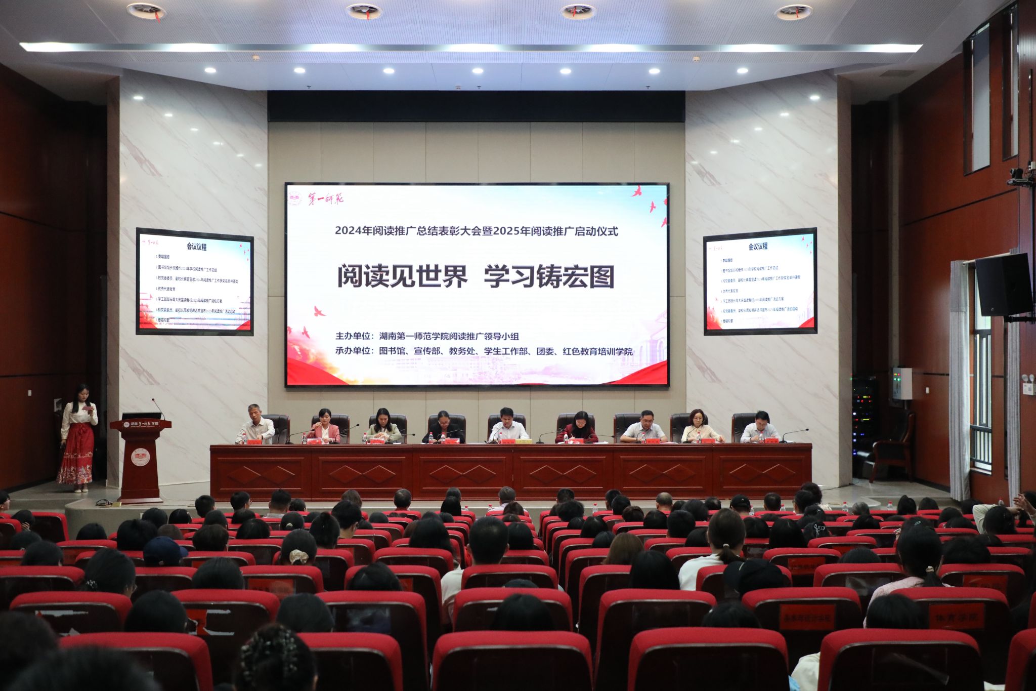 会上,2025年阅读推广活动正式启动。以“阅读见世界学习铸宏图”为主题,本次活动将以社会主义核心价值观为指引,致力于构建更系统的阅读推广体系,引导学生爱读书、读好书、善读书。启动仪式当天,“数字资源宣传月”“世界读书日”“我与专家面对面”等系列活动同步开启,吸引数千名师生踊跃参与,标志着全年阅读盛宴正式启航。后续,学校还将开展“书香班级创建评选活动”“助力乡村振兴活动”“中华经典诵读大赛”“高校播客比赛”等近10余项贯穿全年的主题阅读活动。