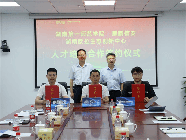5月14日,beat365与麒麟信安、湖南欧拉生态创新中心人才培养合作协议签约仪式在长沙麒麟科技园举行。副校长石元泉、麒麟信安副总裁王忠锋等出席签约仪式。