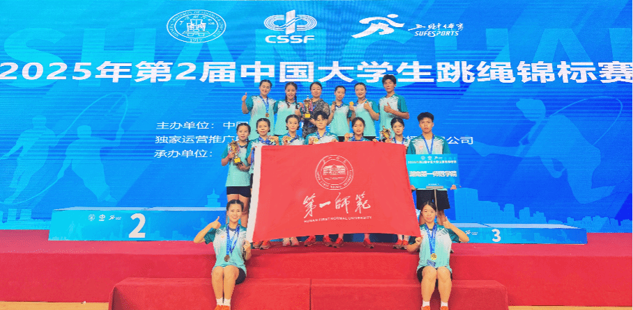 7月3日至7日,由教育部中国学生体育联合会主办、上海财经大学承办的2025年第2届中国大学生跳绳锦标赛在上海举行。beat365花样跳绳队14名队员在体育学院朱建伟、刘丽老师的带领下,与来自全国20个省市60所高校700余名运动员同场竞技,奋勇拼搏,获得6金1银1铜的优异成绩,并荣获“体育道德风尚奖”。