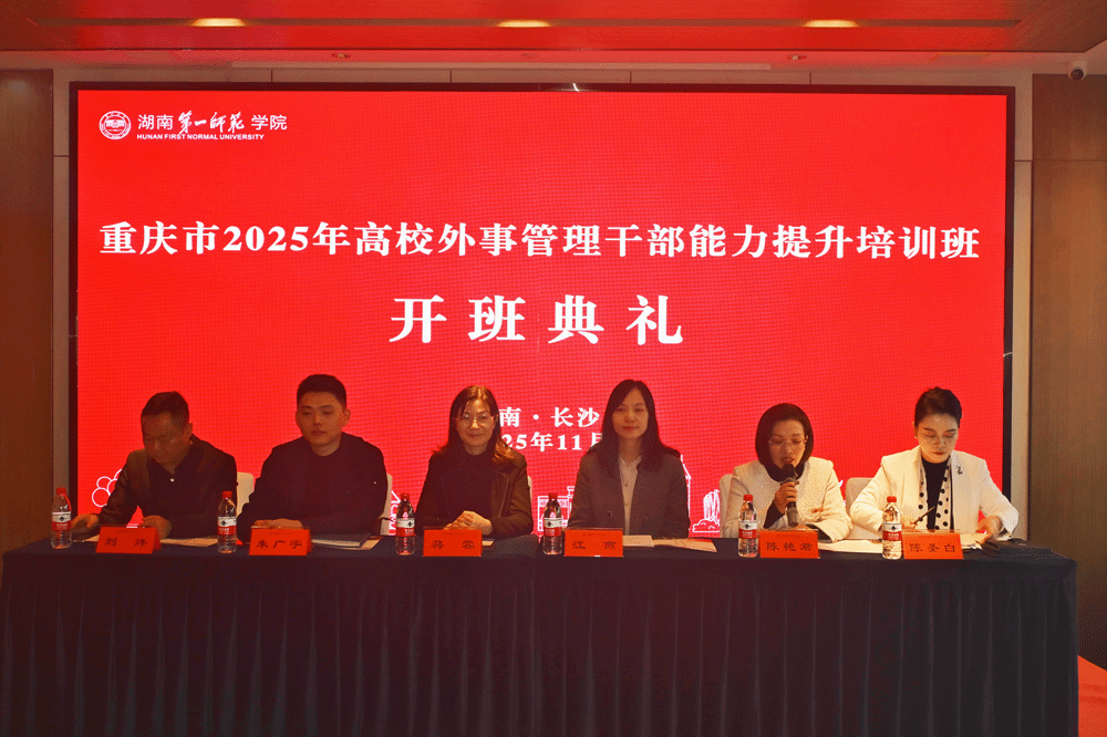 重庆市教育委员会国际合作与交流处分管外事管理的干部,重庆市2025年高校外事管理干部能力提升培训班学员,beat365国际交流与港澳台事务处、现代教育发展学院负责人参加开班仪式。