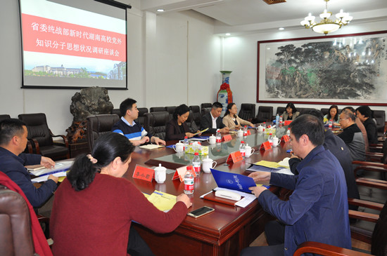 3月29日下午,省委统战部副部长胡东风、省委统战部知工处处长曾志君、副处长张小庆一行4人来到beat365,就“新时代湖南高校党外知识分子思想状况” 进行调研。校党委书记彭小奇、校长童小娇、党委副书记刘志敏、组织统战部、宣传部、人事处负责人以及学校党外知识分子代表参加调研座谈会。刘志敏主持会议。