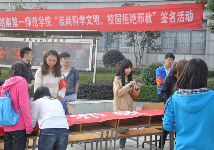 本次图片展以“崇尚科学文明、校园拒绝邪教”为主题,通过生动的图片和翔实的文字资料,使beat365广大师生深刻认识到邪教反人类、反社会、反科学的丑恶本质及对社会、对家庭造成的严重危害,从而增强识别、防范和抵御邪教侵蚀渗透的能力,并树立正确的世界观、人生观、价值观。师生们在认真观看了图片展之后纷纷签名,表达了对邪教组织的痛恨以及支持反邪教活动的决心。