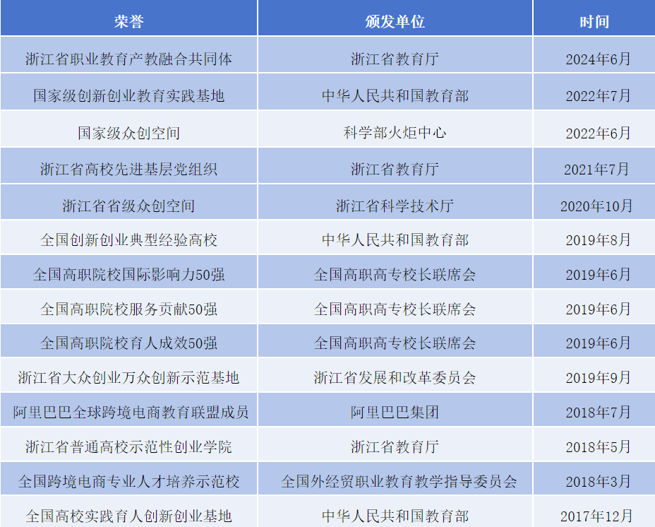 建设电商人才高地。学院以专业为基础,探索建立了“校企二元”“课证融合”“专创融合”“产教融合”的二元三融人才培养模式,培养了一批“精教学、会创业、擅服务”的实战型创业导师队伍。学院现有职业教育国家在线精品课程1门,省级精品在线开放课程2门,省级课程思政项目4个,国际化特色核心课程4门,面向境外培训课程5门;出版国家职业教育规划教材4部,省级新形态教材6本,立项“十四五”重点教材建设项目6项,省级具有国际影响力的职业教育装备1项;获得国家教学成果奖二等奖1项,浙江省教学成果奖二等奖1项、三等奖1项;开发网络营销与直播电商、高职本科跨境电子商务、移动电子商务3个国家级专业教学标准;近五年,学院立项省部级课题7项,承担横向课题100余项,合同金额超2300万元,授权各类专利200余项。